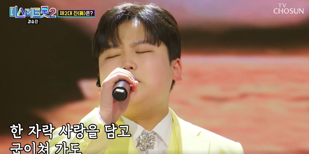 “그동안 미스터트롯 2를 너무 사랑해 주시고, 참가자들 응원 많이 해 주신 시청자 분들께 감사드립니다. 참가자 분들 빛나게 해 주신 마스터, 제작진 감사드리고, 사랑하고 존경하는 어머니 아버지 나아주시고 키워주셔서 감사합니다. 제가 가진 작은 재능으로 때로는 위로가 때로는 행복이 되는 가수가 되도록 평생 노력하겠습니다.”
