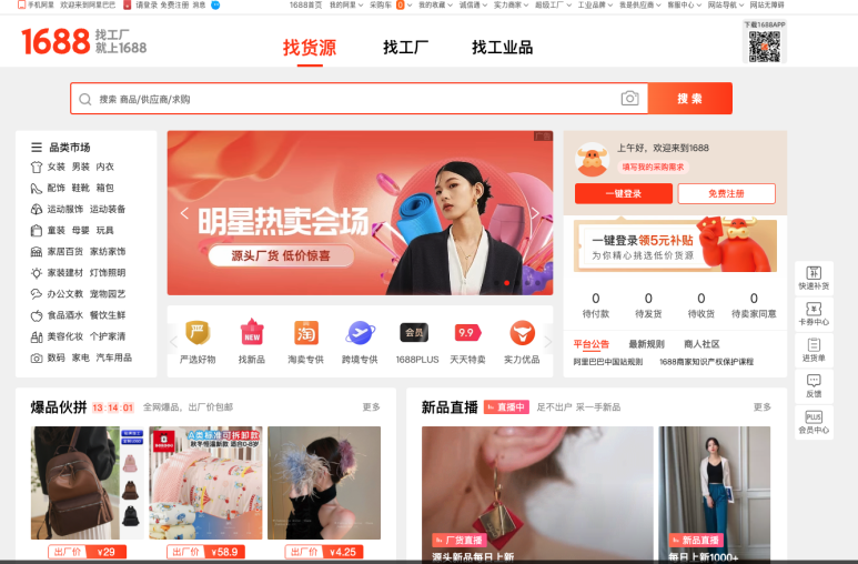 - 1688: 중국 내수용 도매 사이트로 단가가 가장 저렴하고 다양한 제품군이 있습니다. 소규모 사업자에게 유리하지만, 한국어/영어 소통이 어렵고 해외 결제, 직배송이 어려워 전문 구매대행사 활용이 필수입니다.